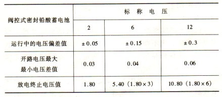 (1)閥控電池在運行中每只單體電池電壓偏差值及放電終止電壓值應符合表3-2的規(guī)定;表3-2 閥控蓄電池在運行中電壓偏差值及放電終止電壓值的規(guī)定 單位:V