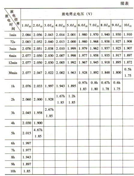 圖4—4閥控電池的放電特性曲線為增長新粒子的結晶中心,以提高充電電流的效率。 5,10~10110放電曲線比1,10~4,l0放電初期端電壓和中期端電壓變化速率變化大,其原因是高放電率下的放電電流很大,電池極化作用隨電流增加而變大。 閥控電池不同倍數率的放電特性見表4—4。表4—4 閥控電池不同倍率的放電特性曲線表(25℃)
